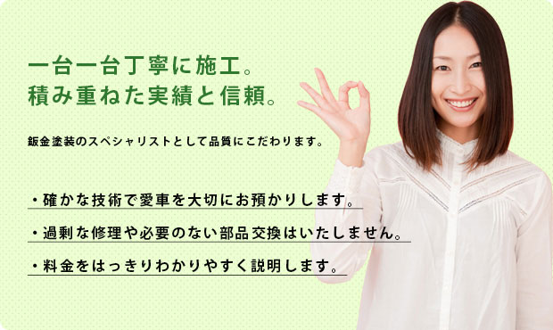 鈑金塗装専用設備と磨き上げられた職人技で、確実な修繕を行います。